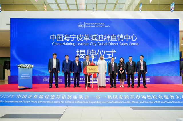在开幕式的重要环节中,备受瞩目的海宁皮革、东港双面呢服装、嘉兴袜业迪拜直销中心正式揭牌。三个直销中心的成立是中国企业拓展国际市场的重要一步。这些直销中心将充分发挥迪拜作为全球贸易枢纽的优势,为中国企业提供更加便捷的出海渠道,助力企业更好地对接中东、中亚、欧洲、非洲等地区的市场需求。