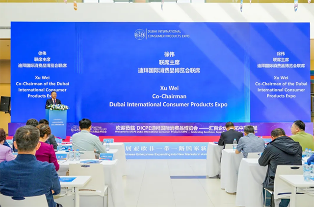 迪拜国际消费品博览会联席主席徐伟在发言中回顾了 DICPE 自成立以来的发展历程。他指出,DICPE 自成立以来,得到了中国 16 个省份领导及企业的积极参与,共有 160 多家企业通过 DICPE 平台建立了深度合作关系。通过 DICPE 的平台,企业不仅收获了大量海外订单,还提升了自身的国际竞争力,拓展了国际市场。徐伟先生强调,DICPE 的成功离不开各方的支持与合作,未来将继续深化与各国企业的合作,推动更多优质中国产品走向世界,为全球贸易的繁荣贡献力量。