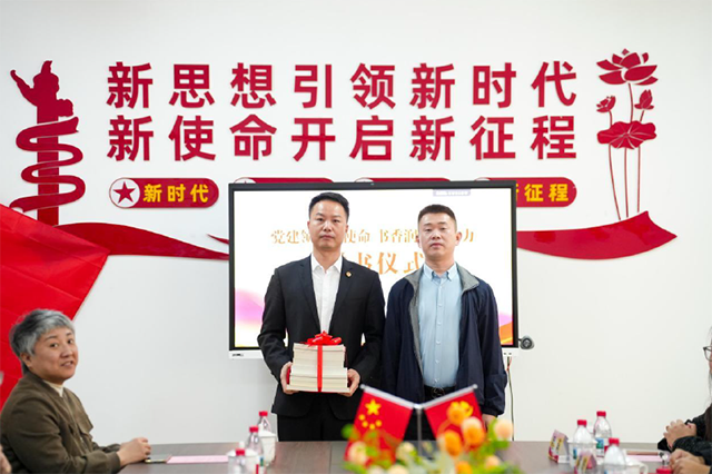 此外,春雷社区党委书记王浩代表党委向中恒集团尤芳专赠送了党建相关书籍,旨在助力党支部加强理论学习,提升党员的政治素养和思想觉悟,为党支部后续开展党建工作提供有力的知识支持。